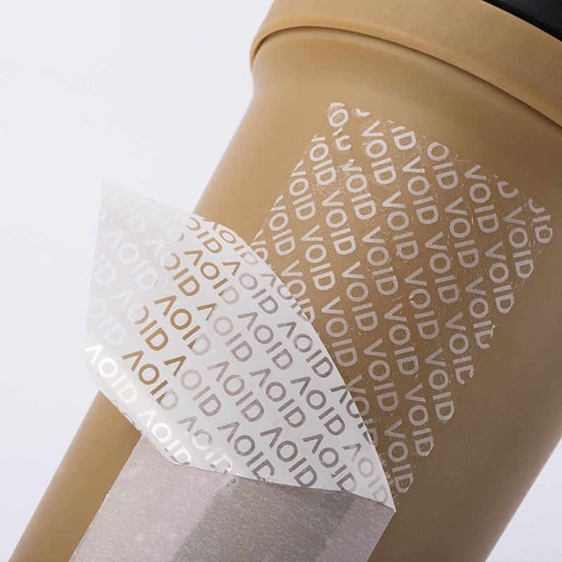 Film VOID de sécurité personnalisé économique estampage à chaud impression UV PET matériau à usage industriel pour les aliments et les gâteaux emballage sécurisé