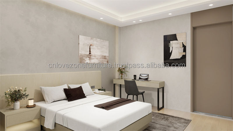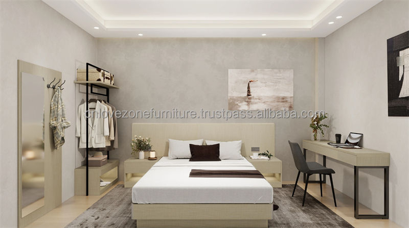 Ensembles de chambre à coucher King Size économiques et modernes, standard hôtelier 3 étoiles, mobilier complet de chambre, lit en bois, tables de chevet, bureau, armoire, miroir mural