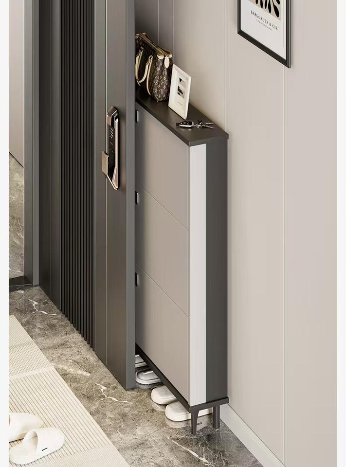 Armoire à chaussures économique : console d'entrée avec grand rangement intégré, ultra-mince, avec porte rabattable
