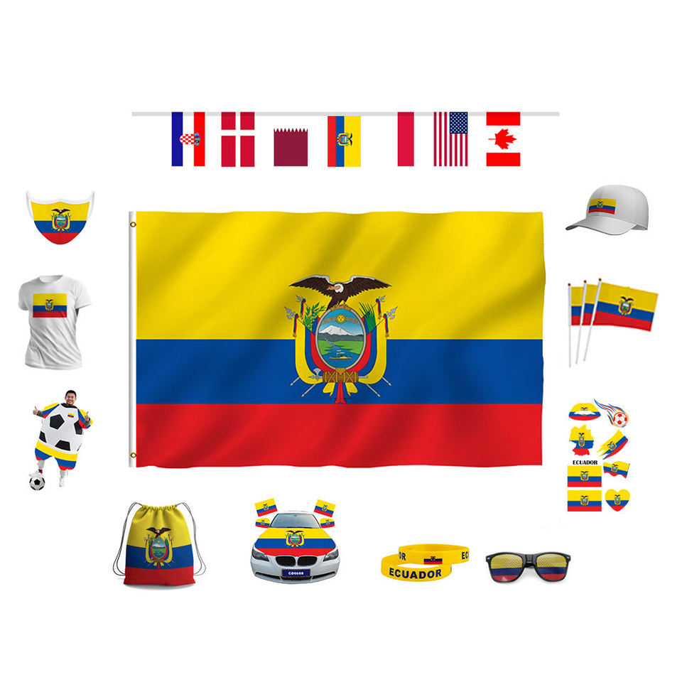 Drapeau souvenir rectangulaire en polyester imprimé numériquement, écologique et imperméable, pour les supporters d'Équateur 2022