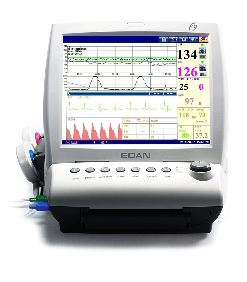 Moniteur fœtal et maternel Edan F9, écran tactile 12,1 pouces, transducteur étanche 1 MHz pour clinique obstétricale