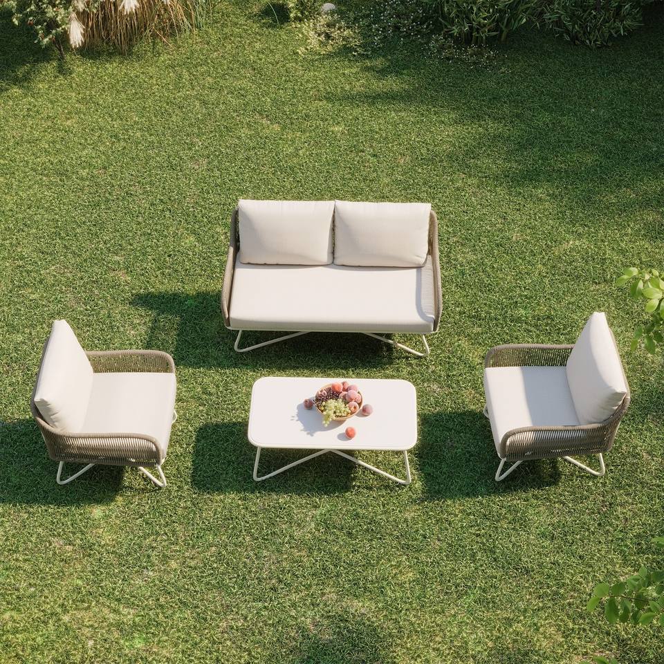 Ensemble de meubles de jardin contemporains en rotin Eden, 4 pièces, résistant aux intempéries
