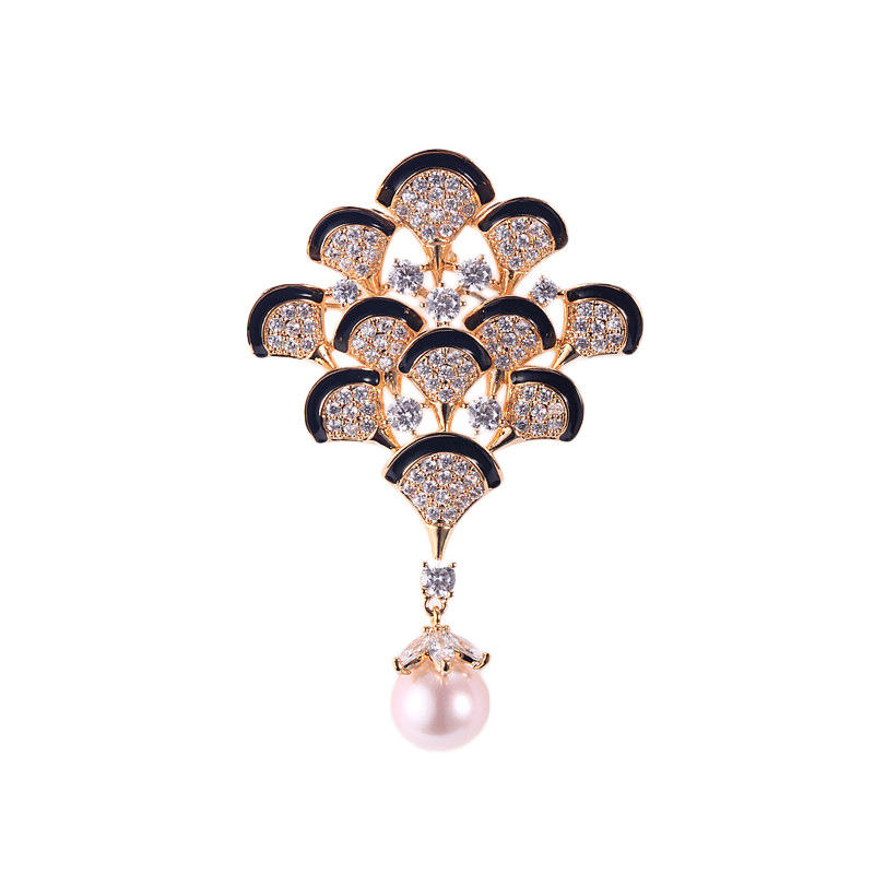 Broche en alliage de cuivre sertie de diamants de 9 mm, nouvelle écharpe en soie anti-lumière avec fleur de poitrine en perle d'Edison, perles d'eau douce fines