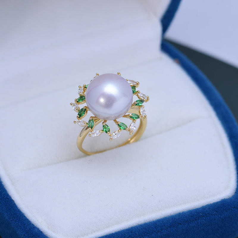 Bague Edison pour femme, perle d'eau douce de 11 à 12 mm avec argent S925, violet et blanc, réglable, forte luminosité, faibles défauts