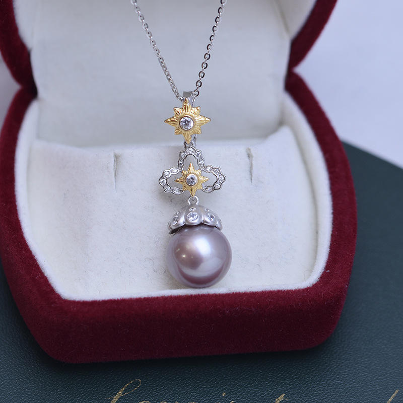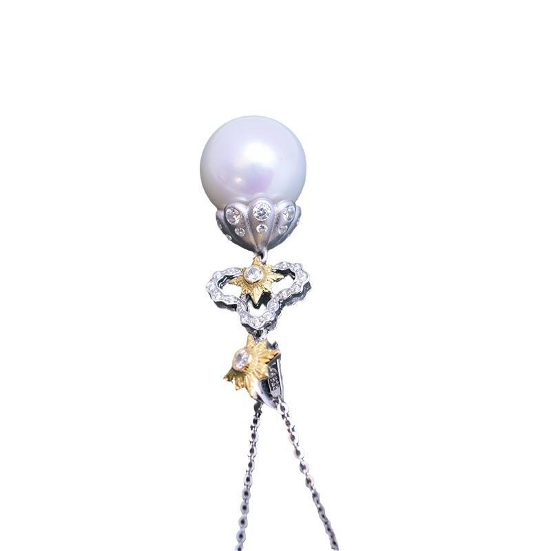 Edison Zhuji 13-14mm White Freshwater Round Pearl Pendant with Strong Light Fine Flaws S925 Silver Necklace