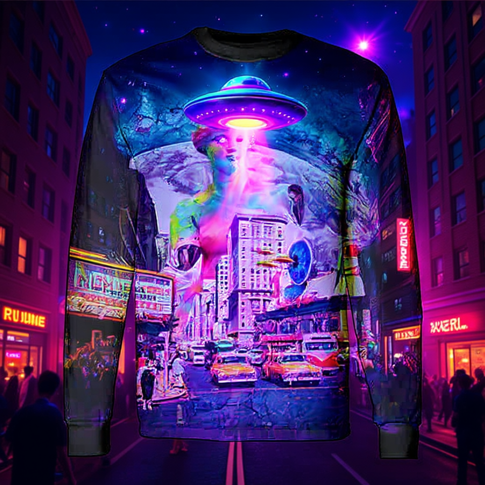 Edm Trippy Street Ufo Dance Rave Music Festival T-shirt à manches longues
