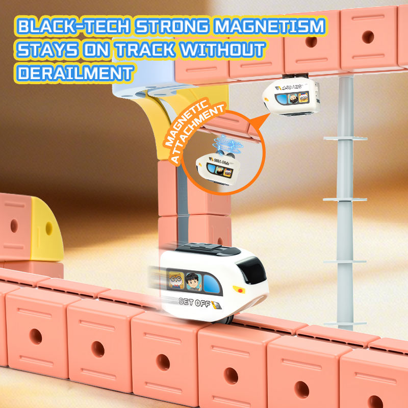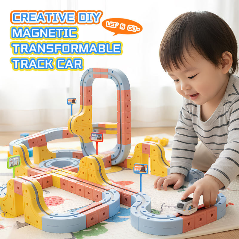 Kit de circuit ferroviaire magnétique éducatif DIY, pistes de course de voitures, jouet STEM, ensemble de pistes d'aventure, train jouet transformable DIY pour garçons de 3 à 8 ans