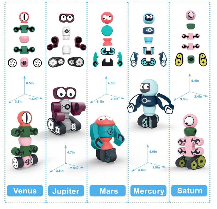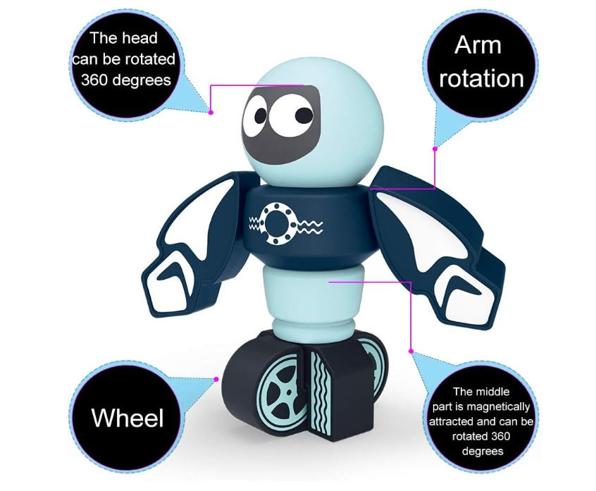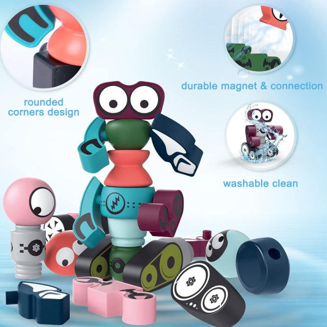 Ensemble de construction de robots magnétiques éducatifs pour enfants de 2 à 7 ans, 30 blocs empilables avec échelle 1:18