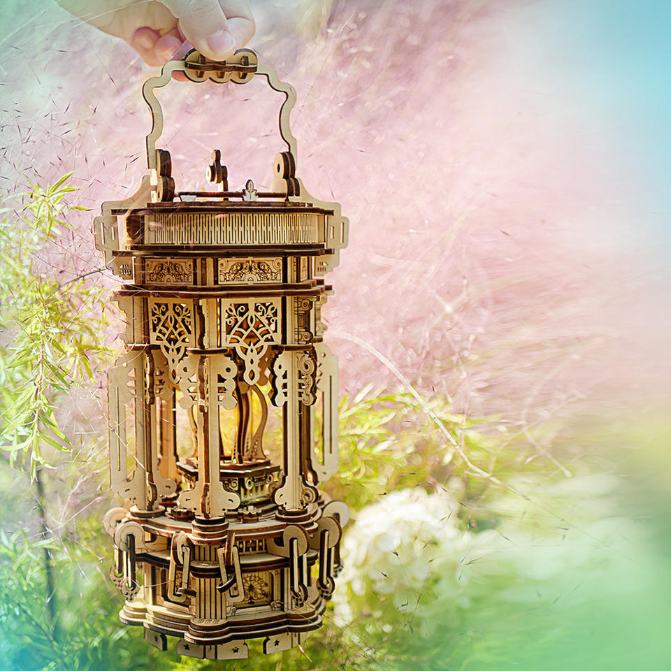 Lanterne en bois rétro éducative, puzzle 3D, assemblage DIY fait main avec lumière - Cadeau décoratif pour les 14 ans et plus