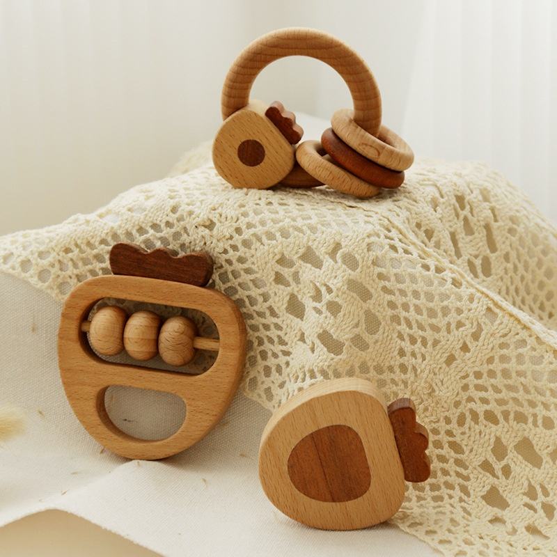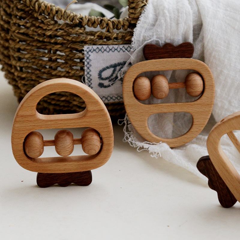 Hochet éducatif à mâcher en bois massif pour les nourrissons sans peinture année de lapin 0-3-6 mois bébé jouet en bois pour les filles