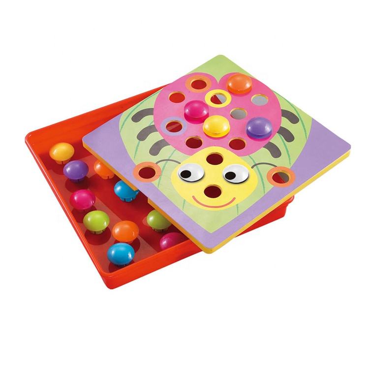 Jouet éducatif coloré en plastique bouton Art Pegboard Puzzle jeu champignon ongles correspondant mosaïque Pegboard Puzzle jouet pour enfants