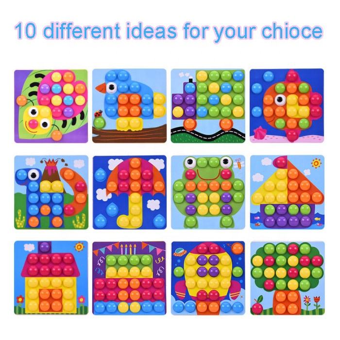 Avantage: jeu de puzzle de clou de champignon:Livré avec un large pegboard pour garder tous les boutons et images
