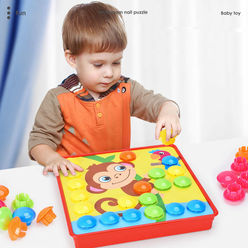 Jouet éducatif HOYE CRAFTS Creative 3D Puzzle Jouets Champignon Ongles Mosaïque Pegboard Puzzle Jeu pour Enfants