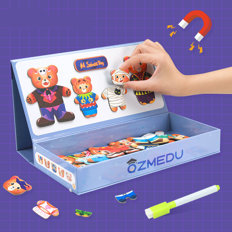 Jouet éducatif nouveau Design créatif dessin animé ours correspondant habiller Puzzle en bois magnétique Puzzle pour les enfants