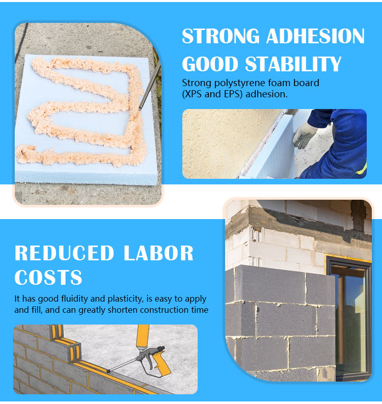 Spray de mousse PU polyuréthane expansible toutes saisons à coût efficace Mortier en mousse de polyuréthane auto-extinguible écologique Mousse PU