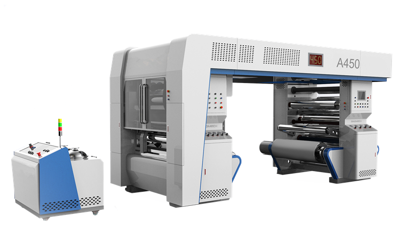 Composants de base:Unwinding Unit, Automatic Tension Control System, Adhesive Metering & Mixing System, Precision Coating Unit, Lamination Nip Roller, Heated Lamination Rollers, Web Guide System, Rewinding Unit, PLC Control Pane