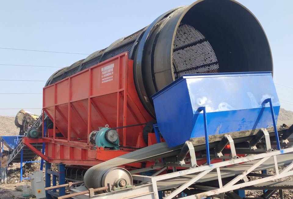 FR ENGIMECH Usine de criblage rotatif à trois étages pour le traitement des déchets municipaux, avec moteur efficace, engrenage pour cuve sous pression 7.5KW, en métal