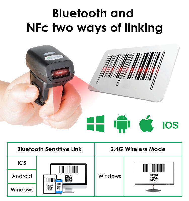 Lecteur de codes-barres 2D CMOS Effon FS03, scanner d'anneau Android, noir, USB 32 bits, stockage, entrepôt, express