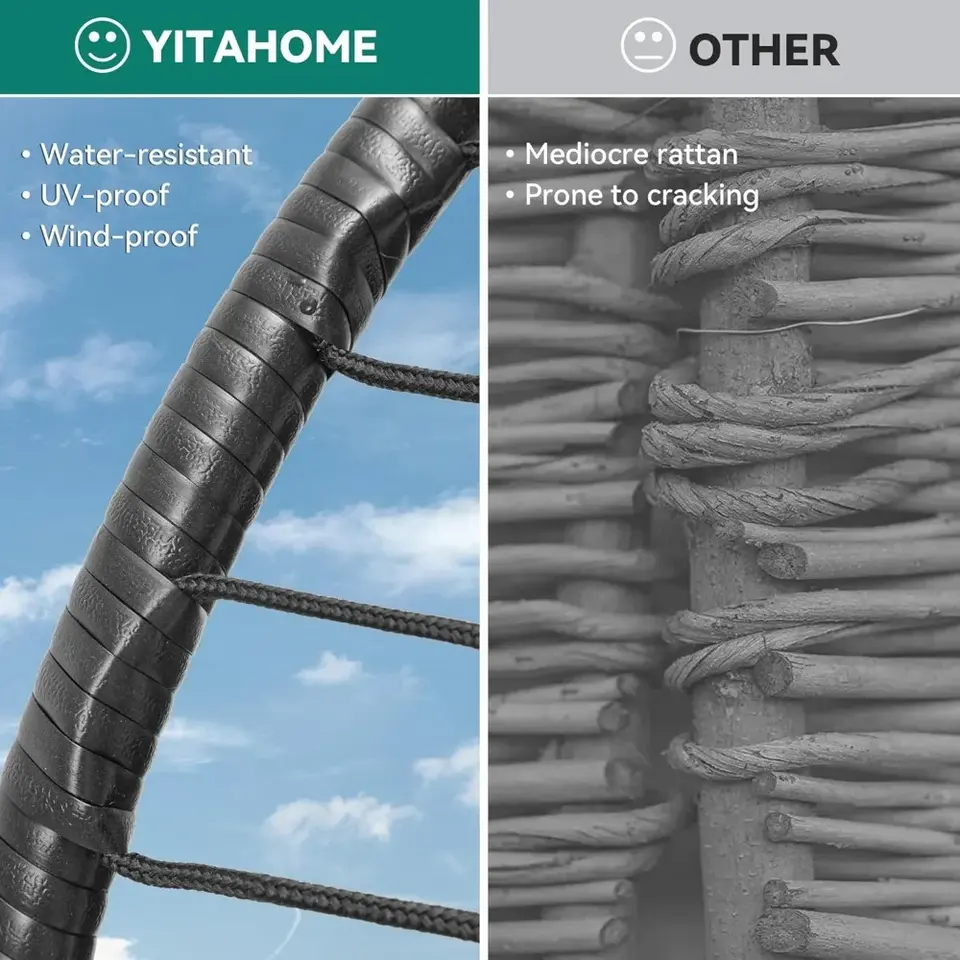Egg Chair with Stand Outdoor Indoor Egg Lounge with Cushion Wicker PE Rattan Included for Patio, Garden,