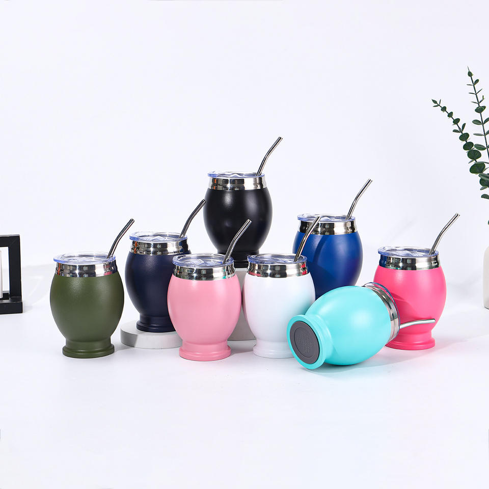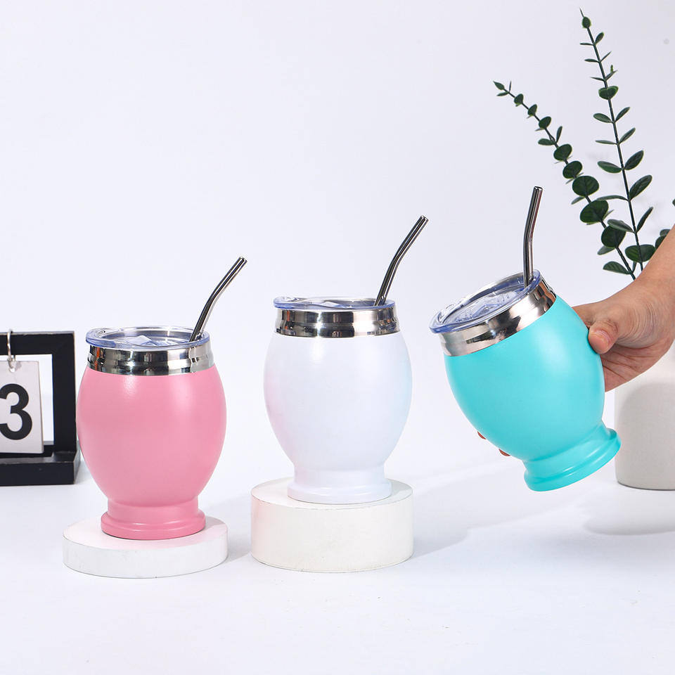 Tasse à œuf en acier inoxydable sans tige de 12oz avec revêtement en poudre Tumbler personnalisé avec cuillère à thé Paille
