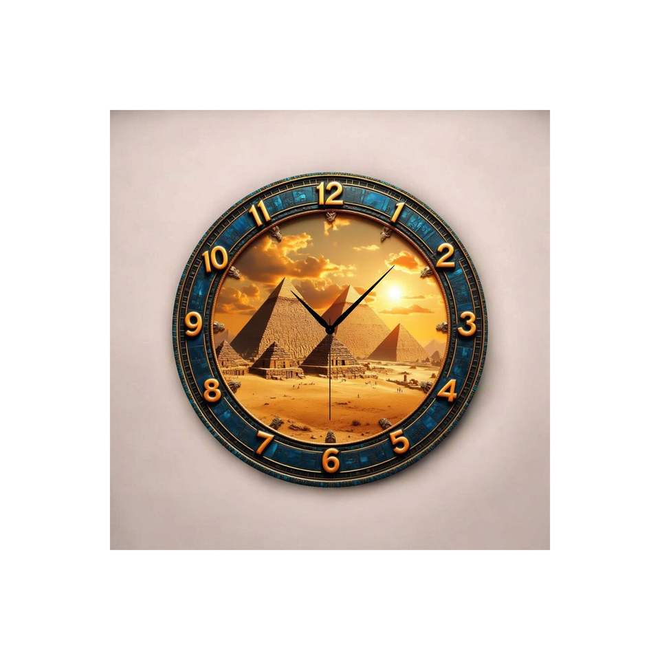Horloge murale ronde silencieuse en bois à motif de pyramide égyptienne 45x45cm, imprimé coloré, numéroté, thème classique, cadeau