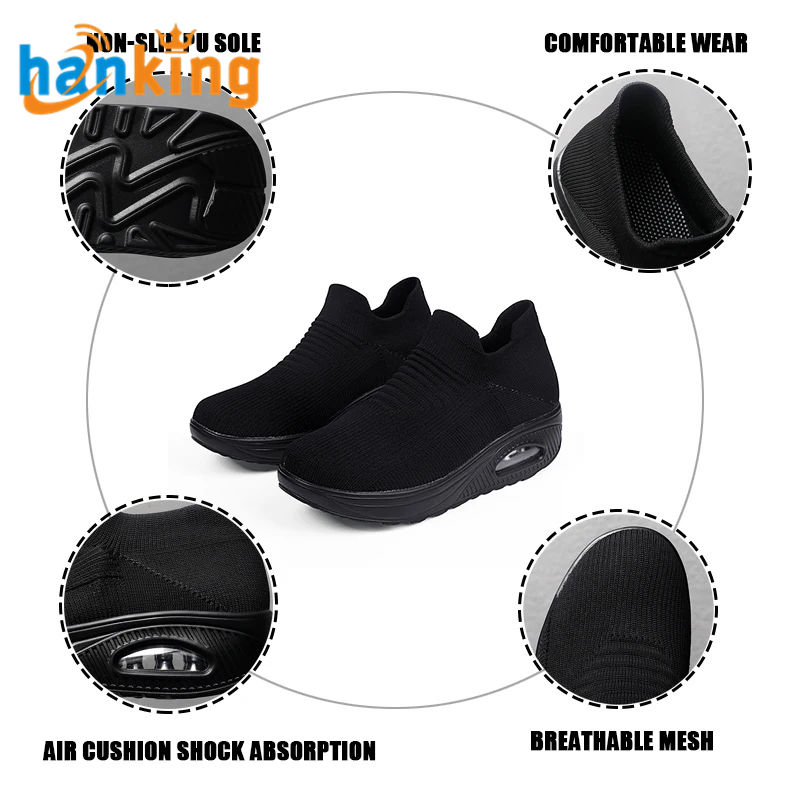 Ehanking Women's Summer Air Cushion Platform Sneakers Comfortable Breathable Mesh Knitted Chunky Running Shoes for Ladies Girls