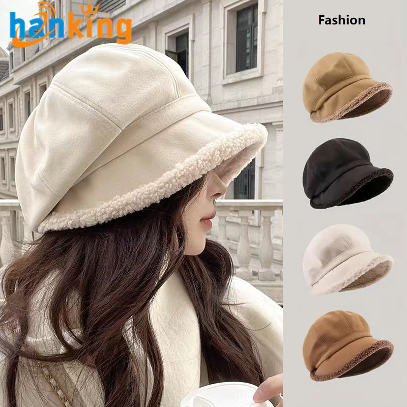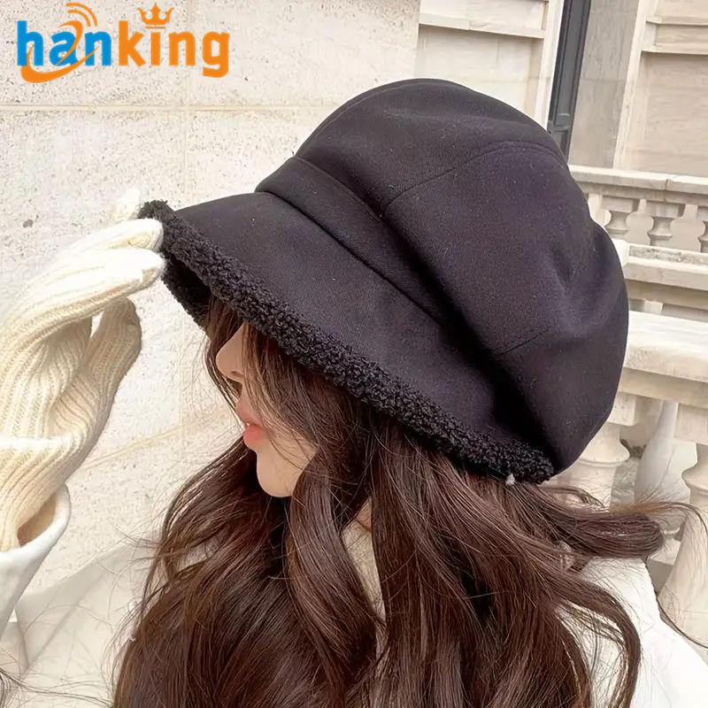 Ehanking Chapeau de pêcheur épais de couleur unie pour femmes, protection des oreilles confortable Chapeau chaud de voyage décontracté