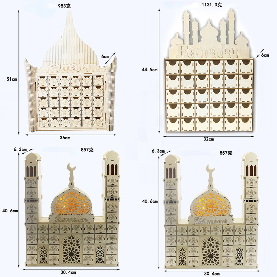 Décorations en bois pour Aid Mubarak, accessoires de fête islamique, calendrier compte à rebours, décorations en bois, pour Ramadan Kareem