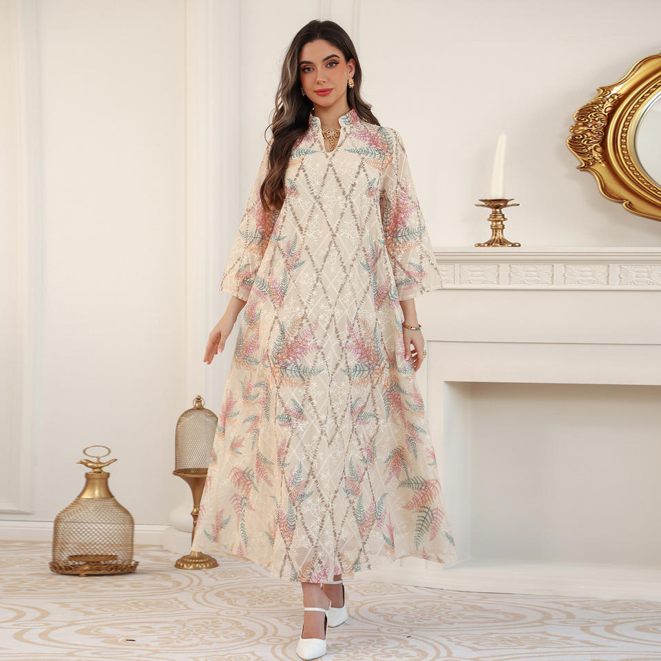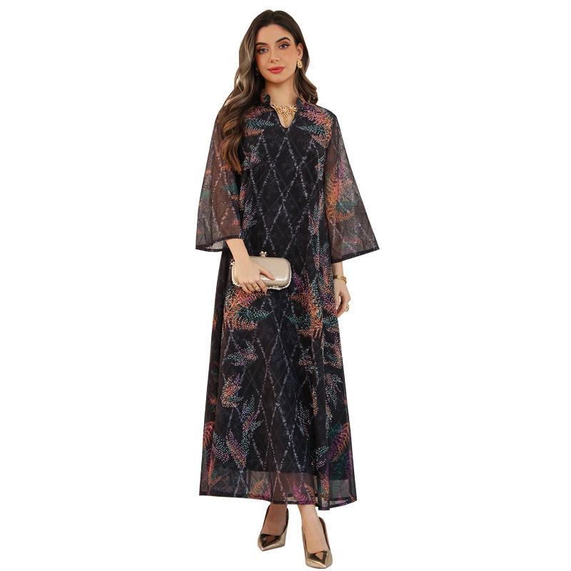 Eid Women Dress Print Mesh Ramadan Abaya Party Vestidos Largos Muslim 2026 Jalabiya Morocco Kaftan Dubai Islam Arab Long Robe