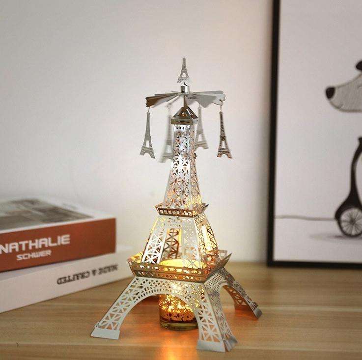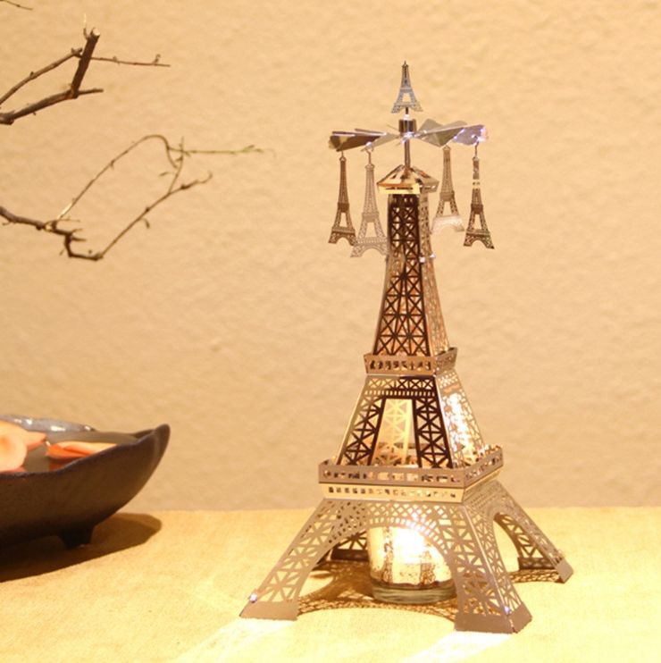 Tour Eiffel Tea Light Romantique Paires Voyage Cadeaux France Tour Vacances Carrousel Rotatif Bougie Décoration Maison Tournant Ornement