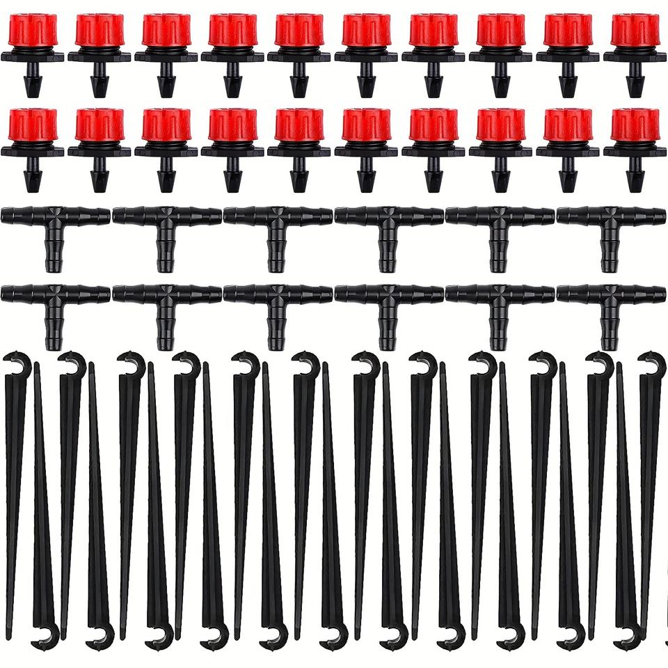 Tête d'irrigation goutte à goutte rouge à huit trous, débit réglable, pour l'arrosage des plantes de jardin, ensemble d'accessoires pour système d'arrosage, 90-150 pièces