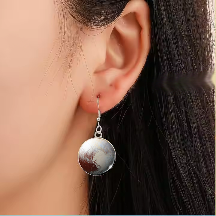 Boucles d'oreilles à crochet en verre cabochon avec les huit planètes du système solaire : Jupiter, Mercure, Neptune, Soleil, Lune, Saturne, Terre, argentées, mignonnes, pour maman, sœurs