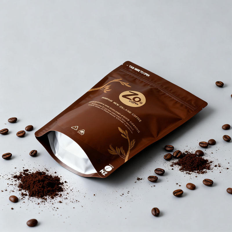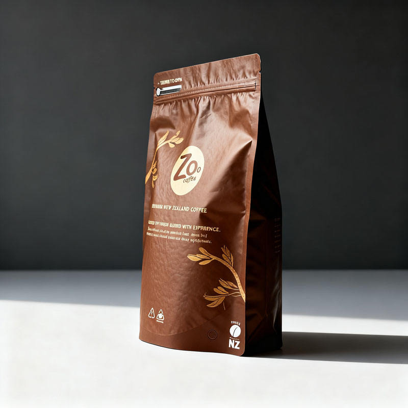 Sacs d'emballage pour café en aluminium scellés sur huit côtés avec fermeture éclair refermable thermoscellable, qualité alimentaire, logo personnalisé