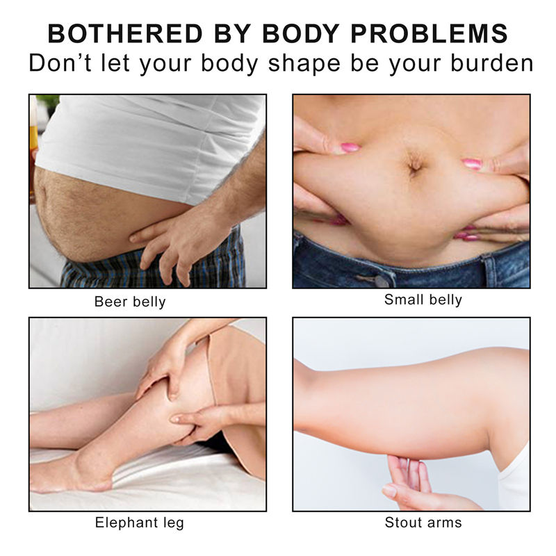 Ventre de bière, petit ventre, jambe d'éléphant, bras voûts.