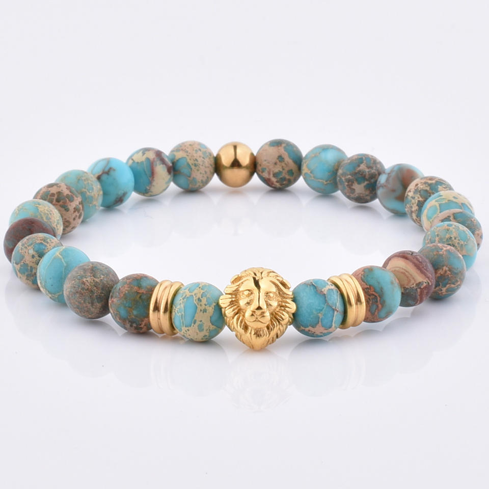 Elastic Band Custom Made Matt Agate Stone Beaded Gorilla Bead Bracelet for Man