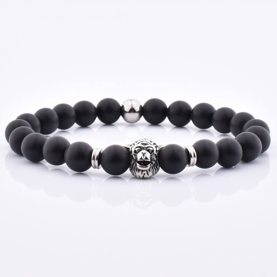 Bracelet en pierre d'agate mate sur mesure avec bande élastique, perles de gorille pour homme