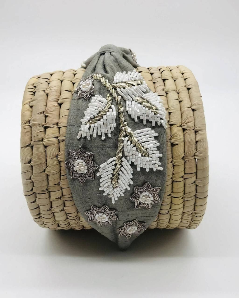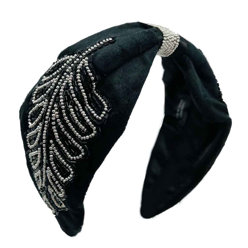 Serre-tête élastique de luxe vintage avec pierres et broderie artisanale personnalisée, orné de perles de rocaille, idéal pour le printemps