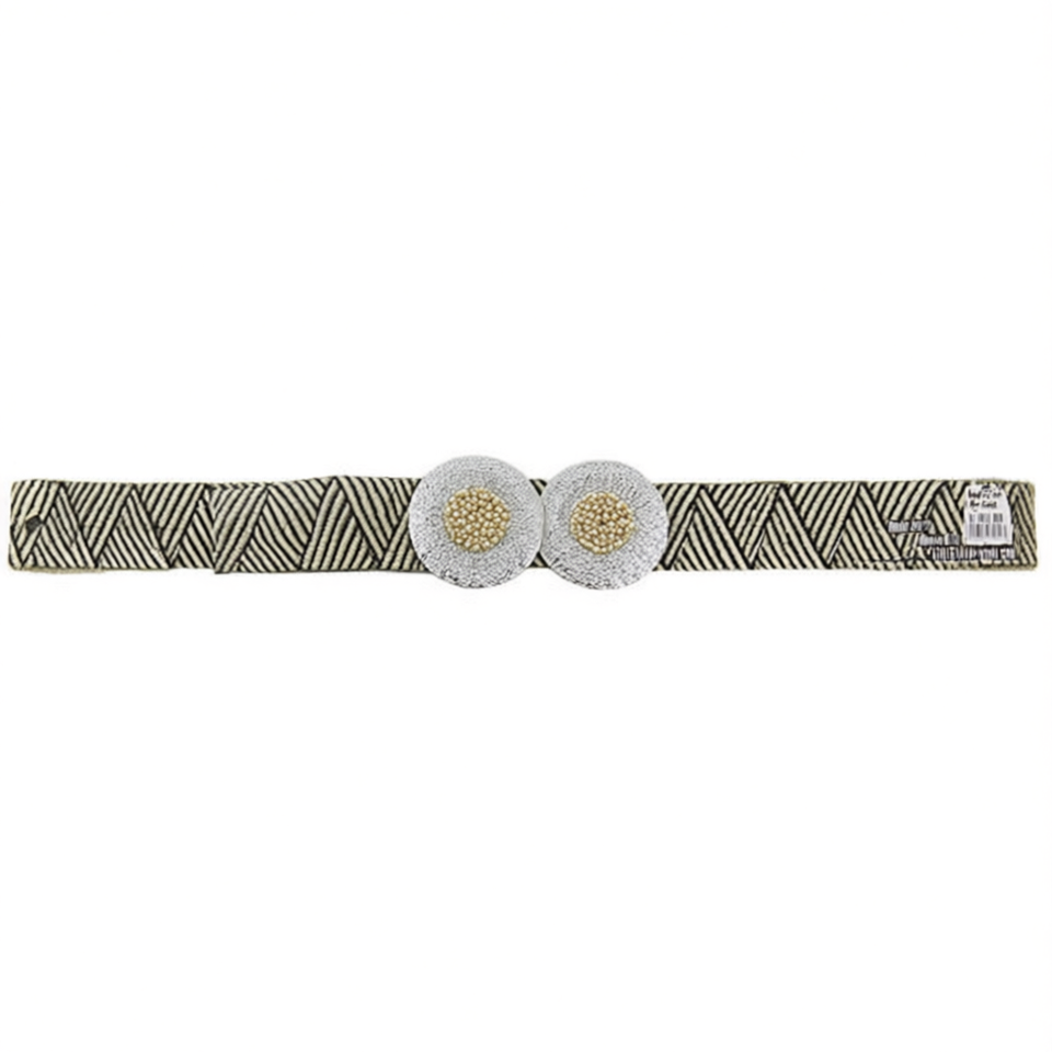 Boucle double ronde en métal de 5 cm de large avec perle de rocaille au centre, ceinture élastique en herbe PP.