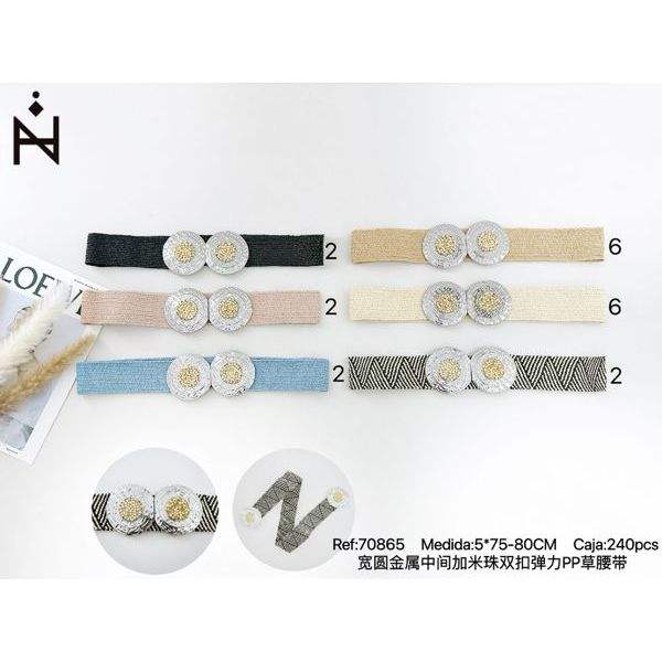 Ceinture élastique en PP pour herbe, largeur 5 cm, boucle double en métal ronde avec perles de rocaille au centre CINTURONES-5CM