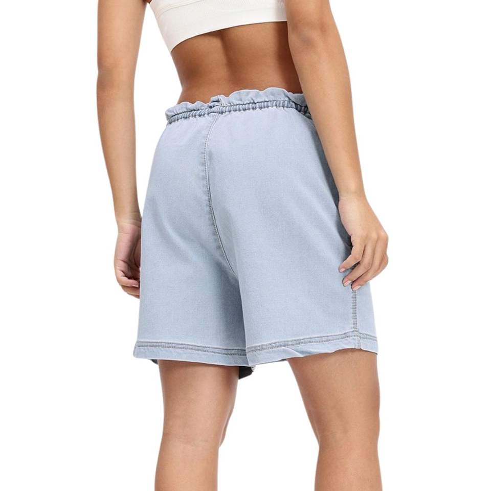 Short en jean à taille élastique avec cordon de serrage, coupe ample, délavé clair, pour femme, tenue décontractée d'été