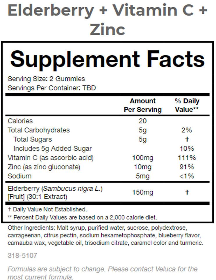 Ingredients:Elderberry (Sambucus nigra L.) + Vitamin C + Zinc