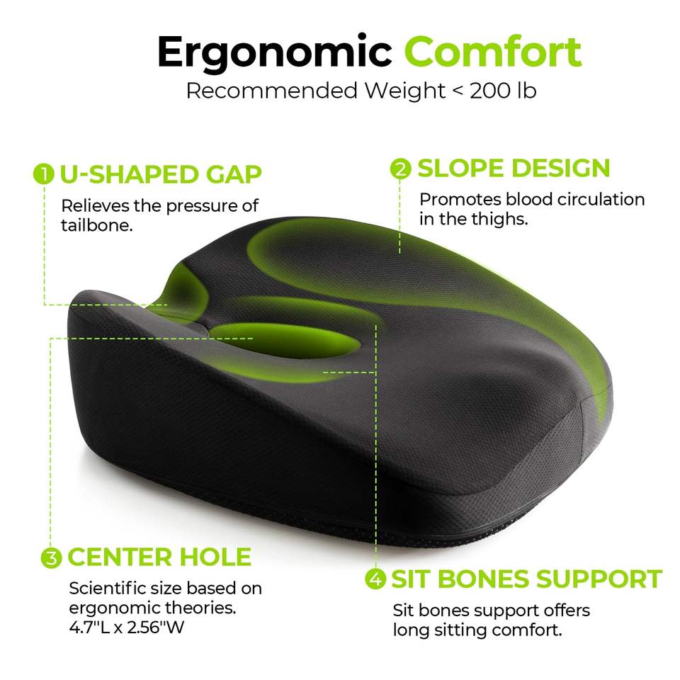 Washable, Ergonomic, Anti-Slip, Anti Dust Mite, Therapy, Anti-Pull, Portable, Eco-Friendly, Memory, Non-Toxic, Nondisposable, Cooling, Cool, Orthopedic, coccyx orthopedic, Pressure relieffeature