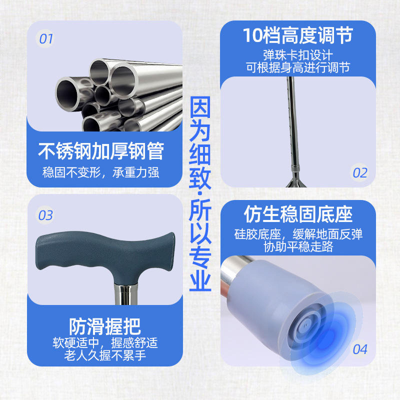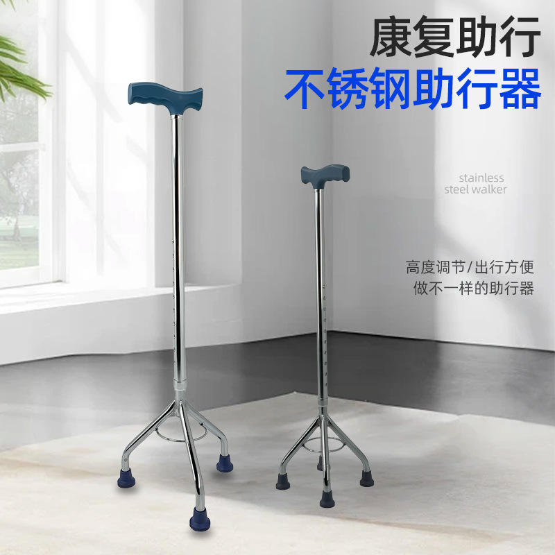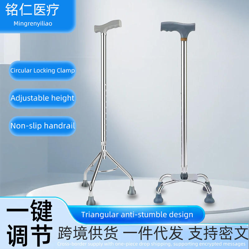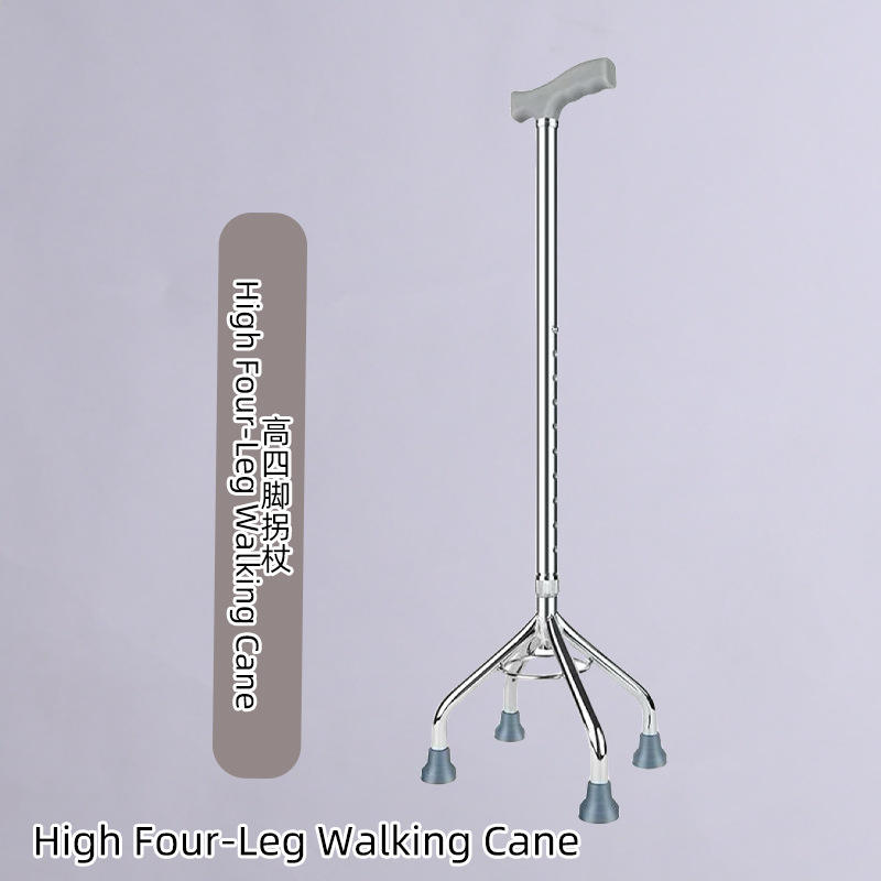 Canne triangulaire à quatre coins pour personnes âgées, légère, réglable en hauteur, télescopique, antidérapante, en alliage d'aluminium avec poignée en caoutchouc