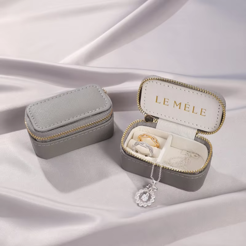 Boîte de rangement pour bijoux de voyage en cuir et velours, avec fermeture éclair, mini, carrée, portable, élégante, avec logo personnalisé EleQeen imprimé, pour boucles d'oreilles et bagues