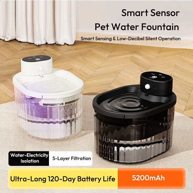 Fontaine à eau intelligente pour chat Elecpet 3L, sans fil, avec batterie 2600mAh/5200mAh, fontaine à eau circulante pour chat