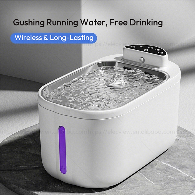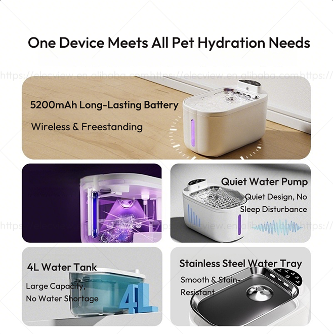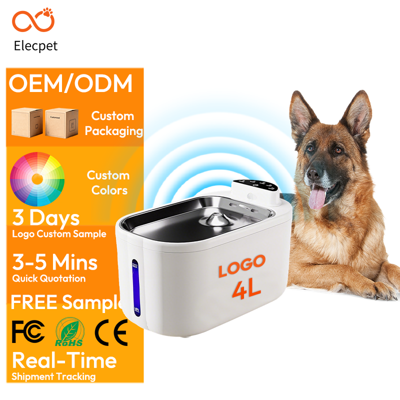 Fontaine à eau automatique sans fil Elecpet OEM 4L pour animaux de compagnie, batterie 5200mAh, séparation eau-électricité, fontaine à eau intelligente pour animaux de compagnie