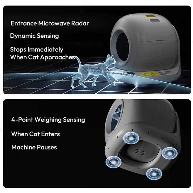Contrôle des odeurs, Facile à nettoyer, Écologique, Large capacity, Nettoyage automatique, Entièrement fermé, Sans poussière, désodorise, surveillance intelligente, Durable