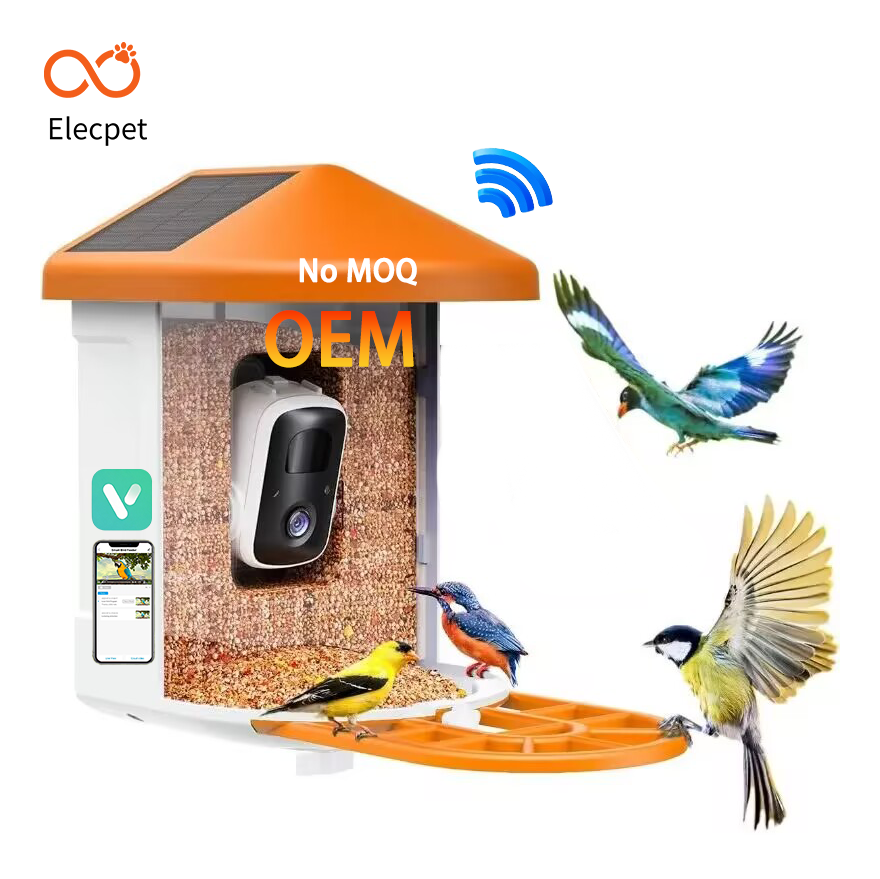 Elecpet Solar Powered AI Smart Bird Feeder with Camera 1080P HD 130° Wide Angle IP65 Waterproof for Garden Bird Watching