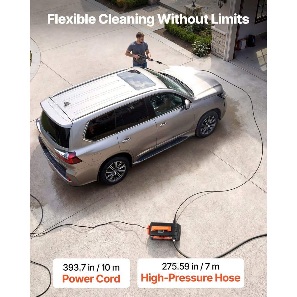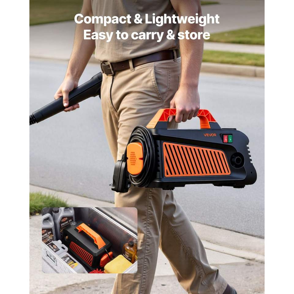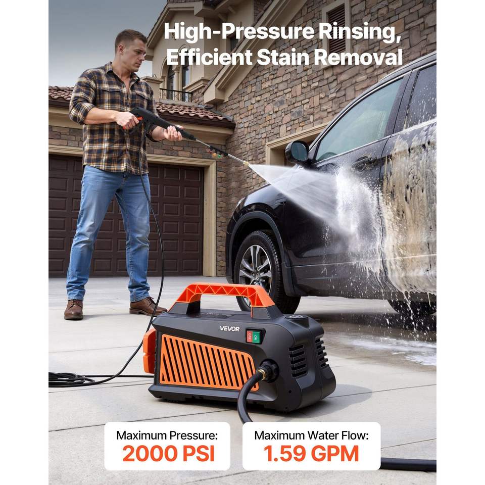 Nettoyeur haute pression portable électrique 2000 PSI max, 1,59 GPM max, 4 buses, lance d'extension métallique intégrée, nettoyeur haute pression avec poignée de transport