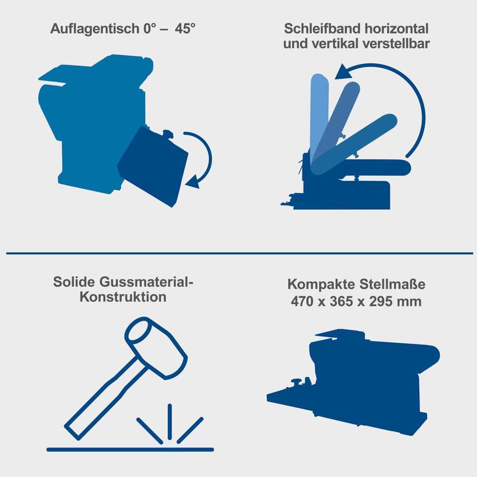 Ponceuse à disque électrique 370W avec plateau de ponçage 715mm x 100mm, table de support 150mm, vitesse réglable 90-45 degrés, 7,5 m/s